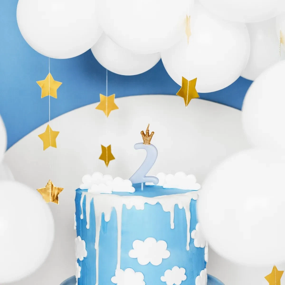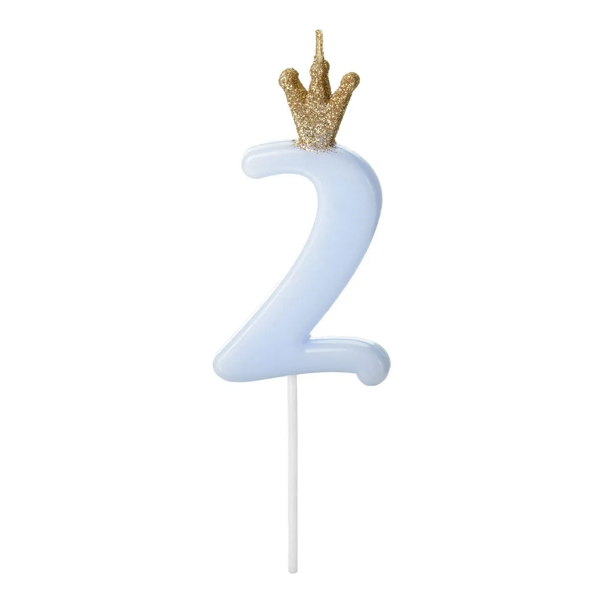 Kagelys Kongekrone tal 2 lyseblå/guld 9,5cm kagepyntKagelys Kongekrone tal 2 lyseblå/guld 9,5cm fødselsdagslys