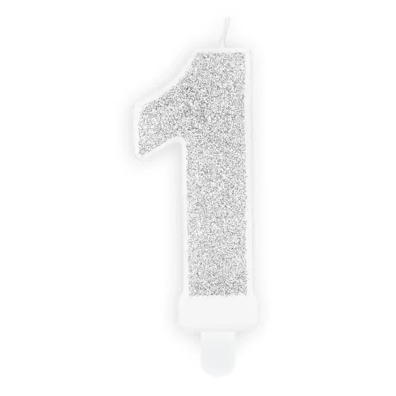 Fødselsdagslys tal 1 sølv 7cm festartiklerFødselsdagslys tal 1 sølv 7cm festdekorationerFødselsdagslys tal 1 sølv 7cm kagepynt