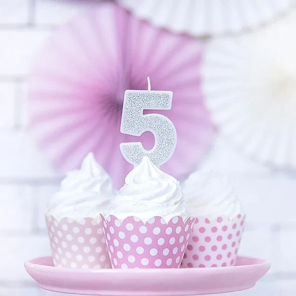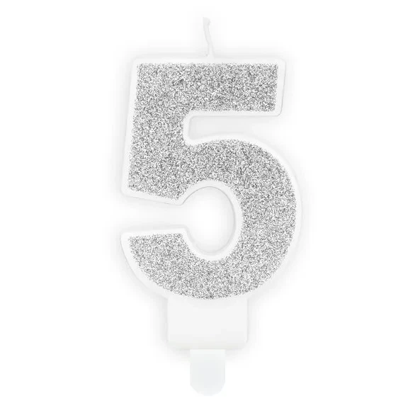 Fødselsdagslys tal 5 sølv 7cm festartiklerFødselsdagslys tal 5 sølv 7cm festlysFødselsdagslys tal 5 sølv 7cm kagepynt
