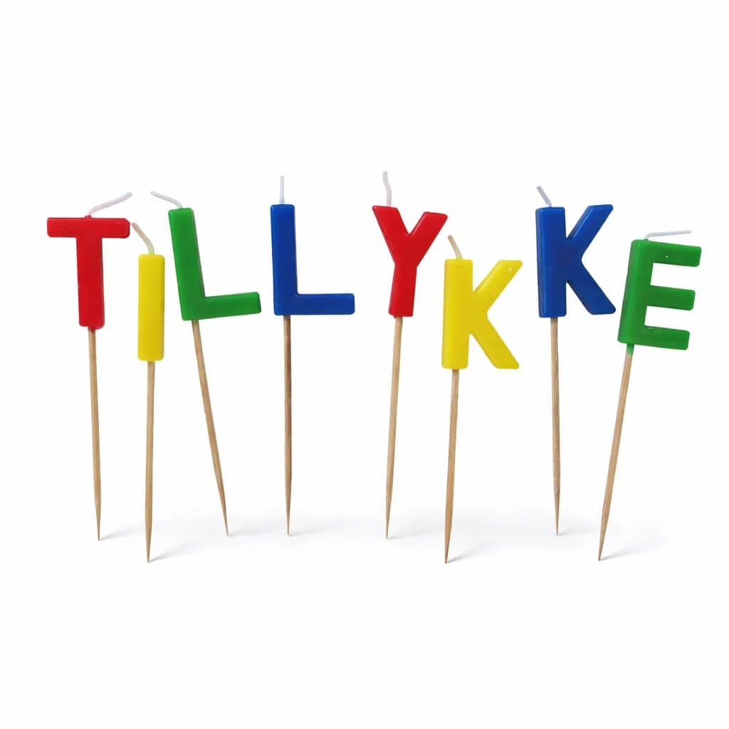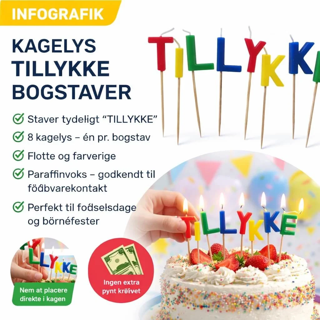 🎂 Kagelys TILLYKKE bogstaver – perfekt til fødselsdagskage