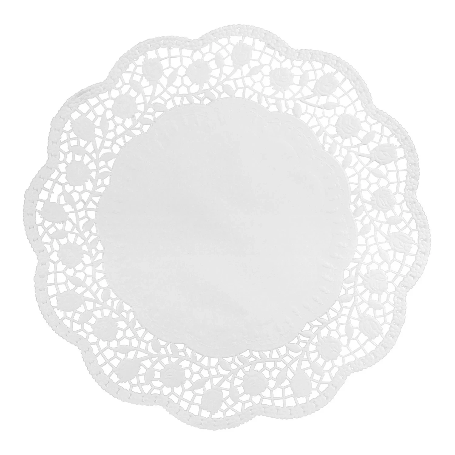Fine hvide kagepapir / mellemlægsservietter med 5 cm smukt trykt hulmønster rundt i kanten. Perfekt til alle fester, jubilæer og receptioner, når kager og desserter skal serveres ekstra flot.