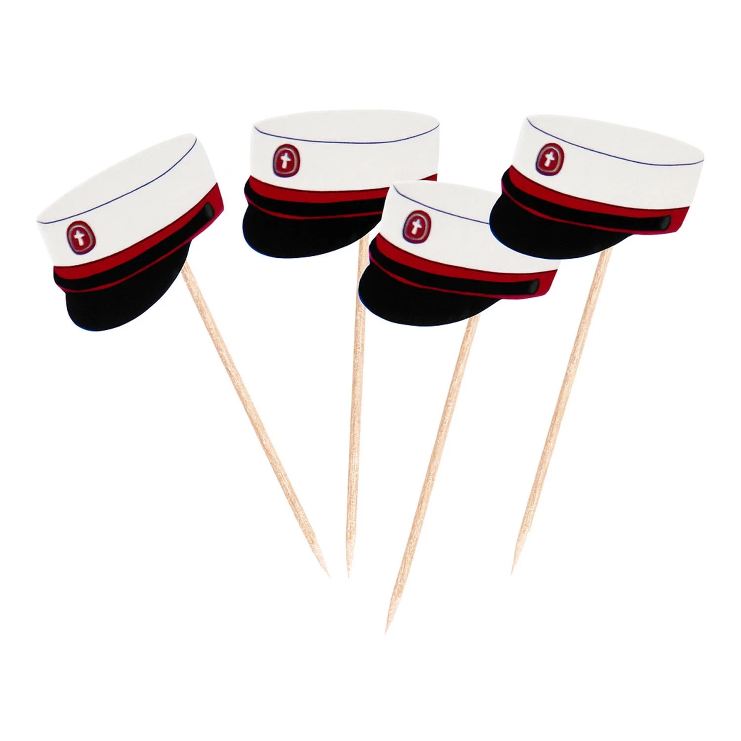 Stik de fine pinde i små snacks, og lad gæsterne dyppe i tilhørende dip, eller pynt muffins og lagkage med dem. Du kan også fæstne dem til bordkortet, hvis I holder stor fest. Huen er hvid med rødt bånd, sort skygge og dannebrogskors og kaldes også en STX studenterhue.