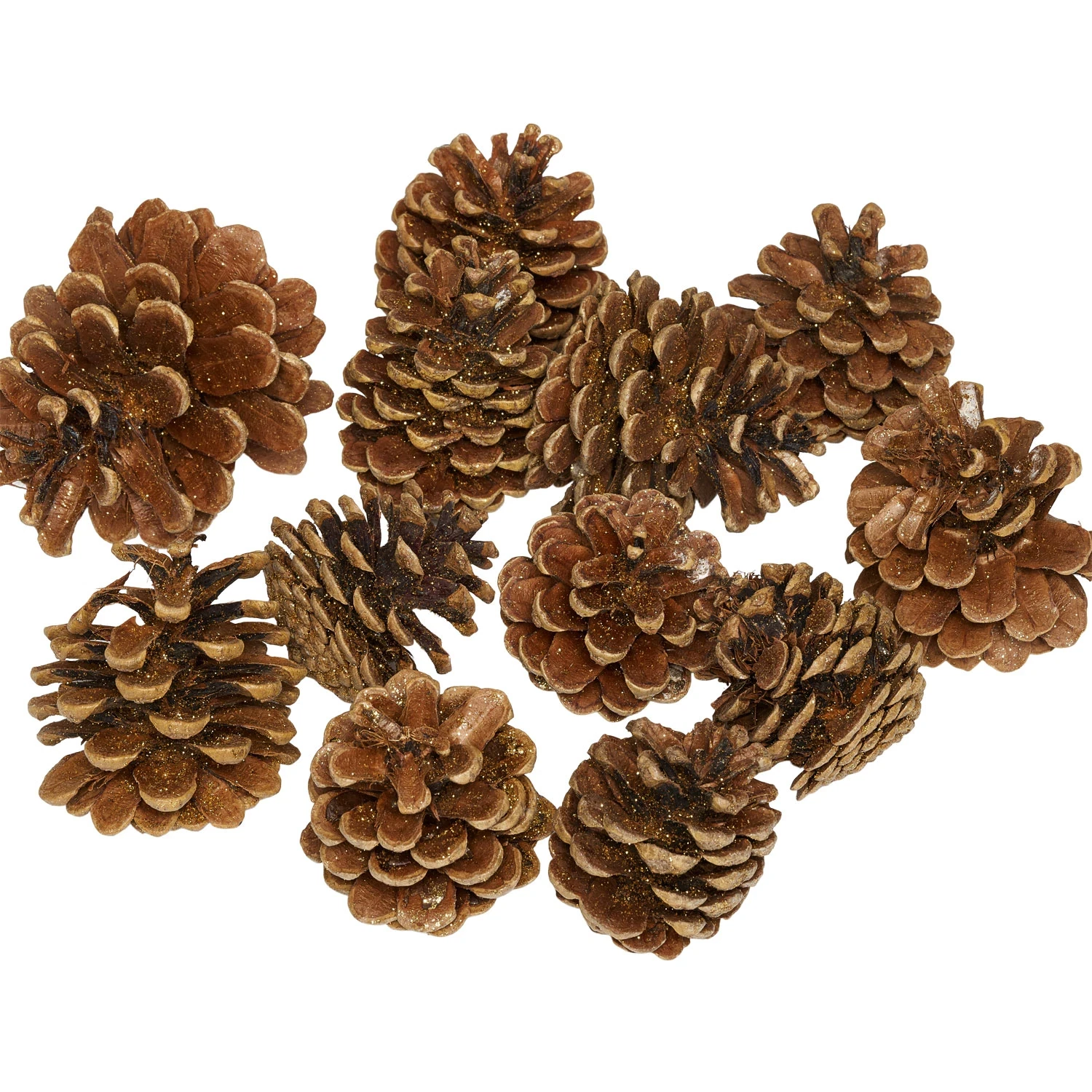 Kogler med guld glimmer 5-9cm, 10-12 stk. juledekorationer