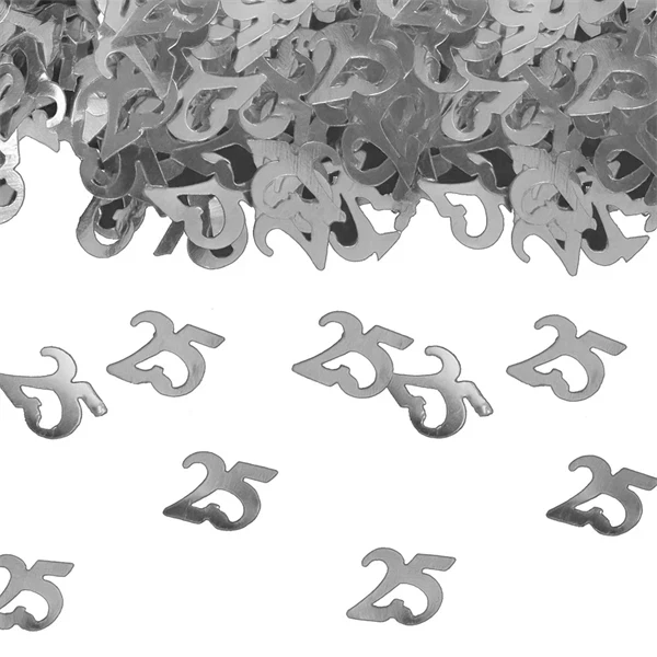 Det helt rigtige bordpynt til et festligt sølvbryllup, 25 års fødselsdag eller et 25 års jubilæum. Drys konfetti på festbordet eller pynt bordkortene eller invitationerne med 25-tallene, og opnå den helt rigtige feststemning.