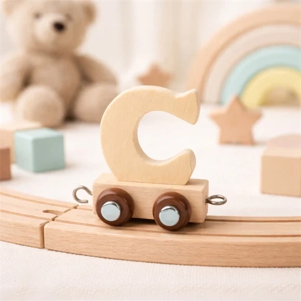 Bogstavet er fremstillet i naturfarvet træ med en glat overflade og afrundede kanter, hvilket giver et stilrent, nordisk udtryk og en behagelig taktil oplevelse for små hænder. Det passer til de fleste standard togskinner i træ og er kompatibelt med populære togbanesystemer, hvilket gør det til en oplagt del af barnets eksisterende togunivers.