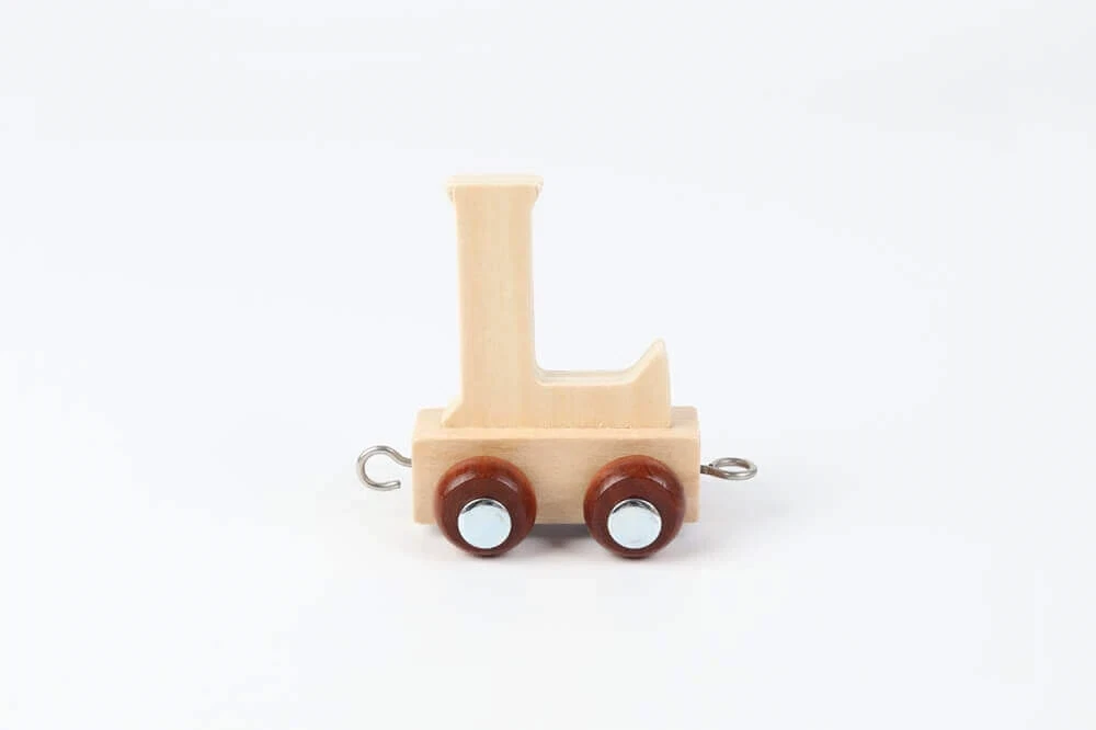 Bogstav L er ideelt til navne som Lucas, Laura, Liam, Lea, Liva og mange flere. Det naturlige trælook gør, at bogstavet harmonerer smukt med andre farver og materialer, og det passer perfekt sammen med både farvede og naturfarvede vogne og lokomotiver.