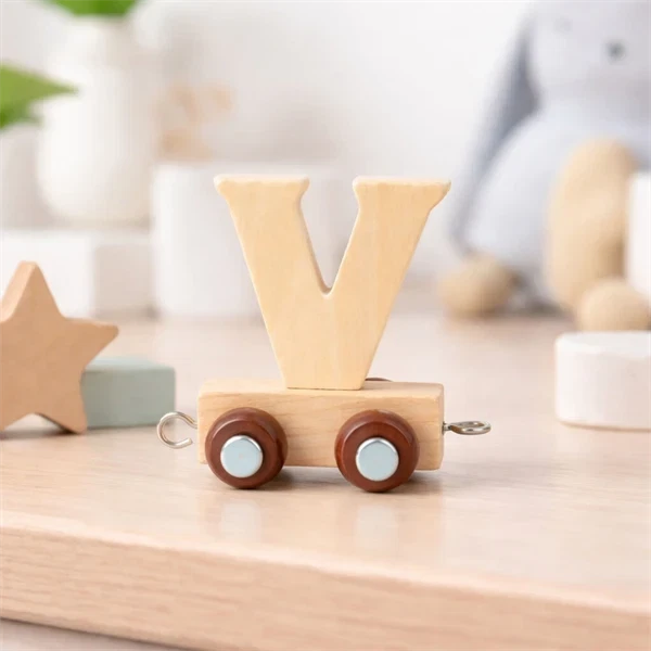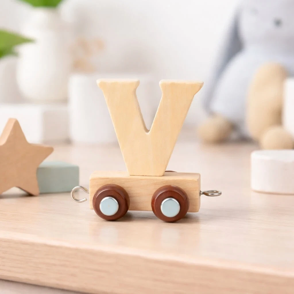 Navnetog bogstav V i natur er en del af en populær serie af træbogstaver, der gør det muligt at stave barnets navn på en dekorativ og legende måde. Hvert bogstav er udformet som en togvogn, der nemt kan kobles sammen med andre bogstaver og figurer i serien.