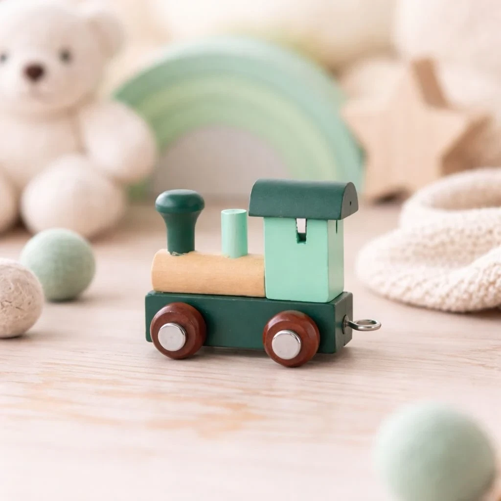 Fremstillet i solidt træ med afrundede kanter og malet med børnevenlige, giftfri farver er navnetoget designet til både holdbarhed og sikkerhed. Magnetkoblinger gør det nemt at tilføje bogstavvogne og figurer, så toget kan vokse i takt med barnets navn og fantasi.