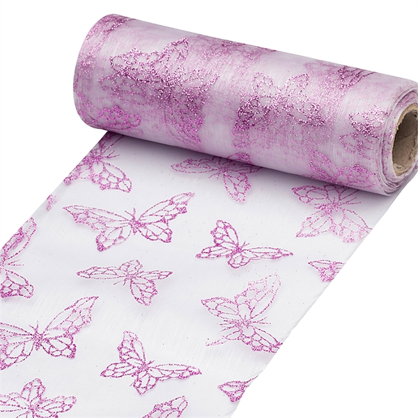 Organza Sommerfugle med glimmer lilla 14,5cm x 10m borddækning