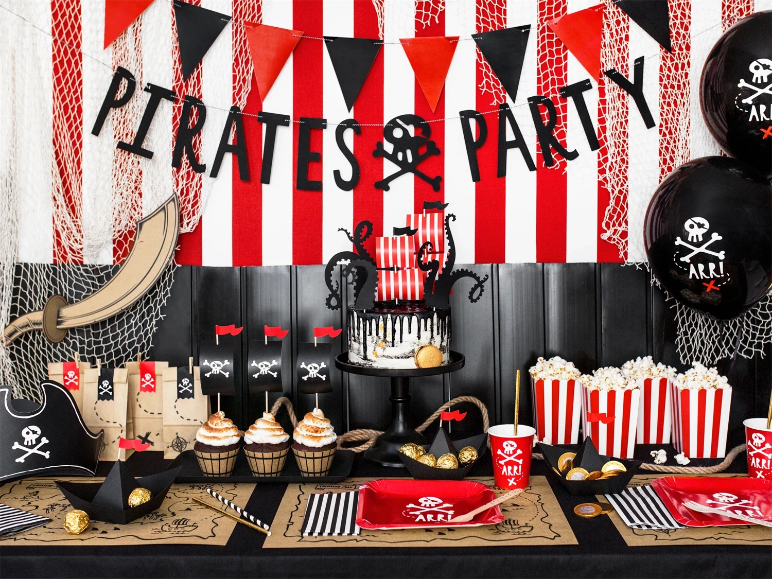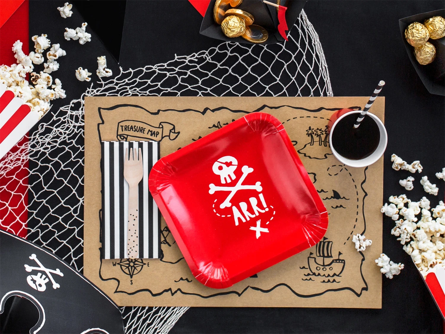 Paptallerkner Pirat - Sørøver rød 20cm x 20cm, 6 stk.