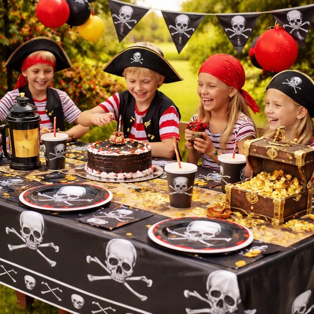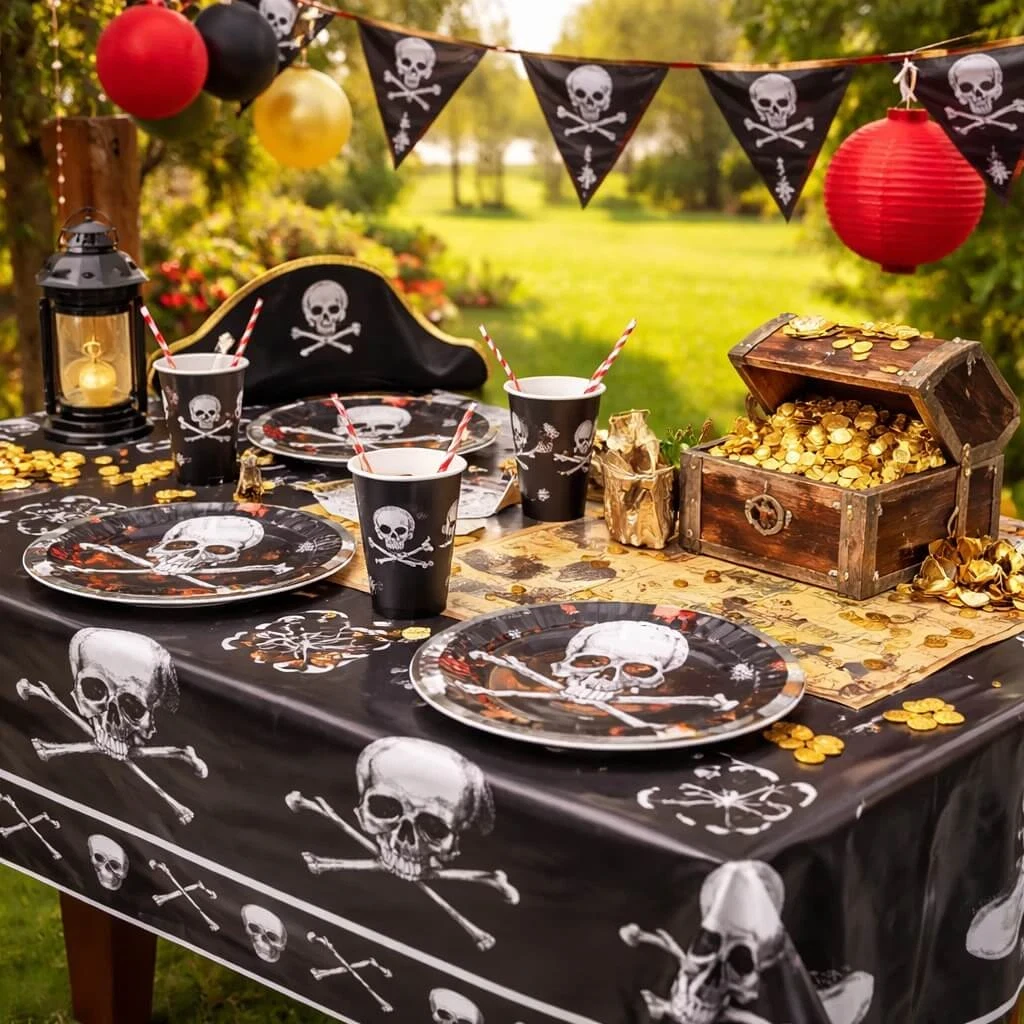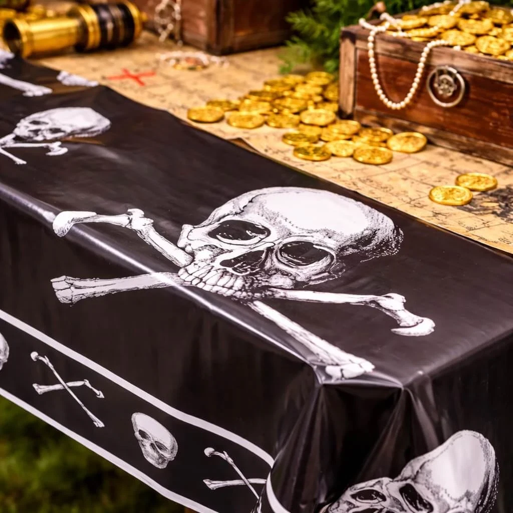 En plast dug til pirat fest er både praktisk og dekorativ.