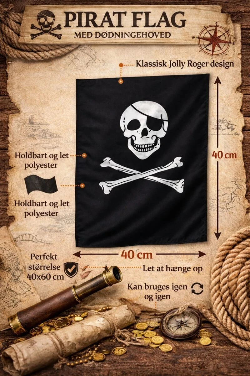 Pirat tema er en favorit blandt børn, fordi det kombinerer fantasi, eventyr og leg. Et pirat flag gør det nemt at skabe en verden, hvor børnene kan være kaptajner, finde skatte og opleve spænding sammen.