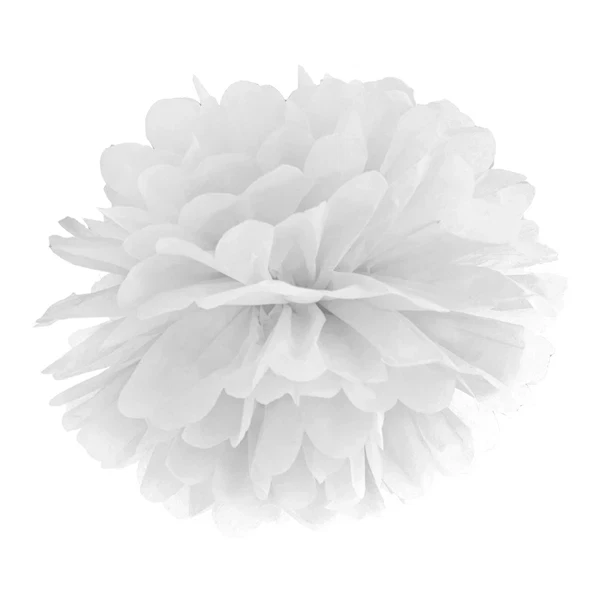 Denne hvide pompom har en størrelse på 25 cm i diameter. Der medfølger instruktion til udfoldning.