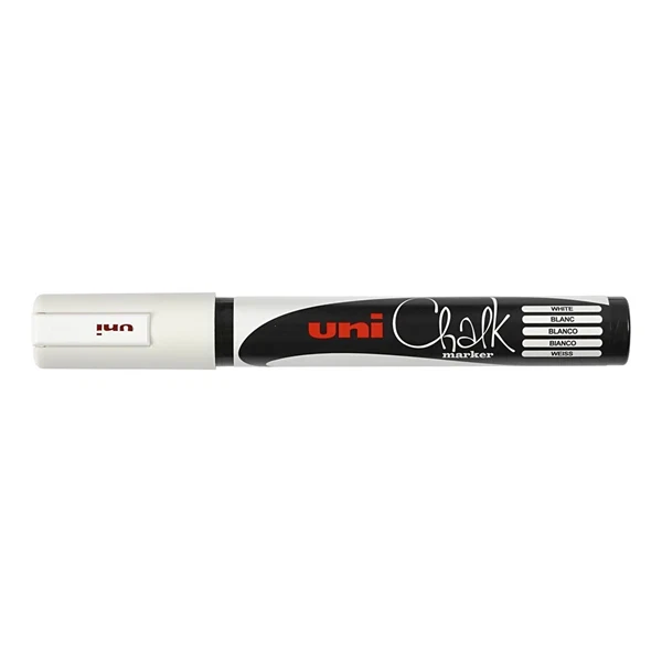Har du brug for en hvid pen, som kan fjerens igen, men som alligevel kan holde også udendørs? Så skal du bruge denne Uni Chalk marker, som laver en hvid streg på 1,8-2,5 mm i tykkelsen.