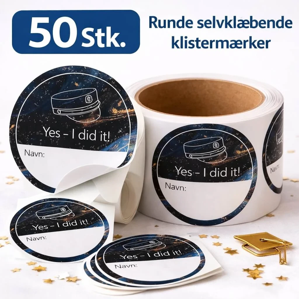 Fejr studenterhuen og de stolte øjeblikke med disse runde selvklæbende studenter klistermærker, leveret på en praktisk rulle med 50 stk. Klistermærkerne er designet til at give et festligt og genkendeligt studentertema, som passer perfekt til både studentergilder, vognture, klassefester og private fejringer.