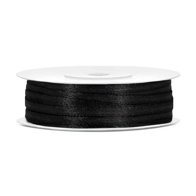Satinbånd sort 3mm x 50m bånd og sløjfer