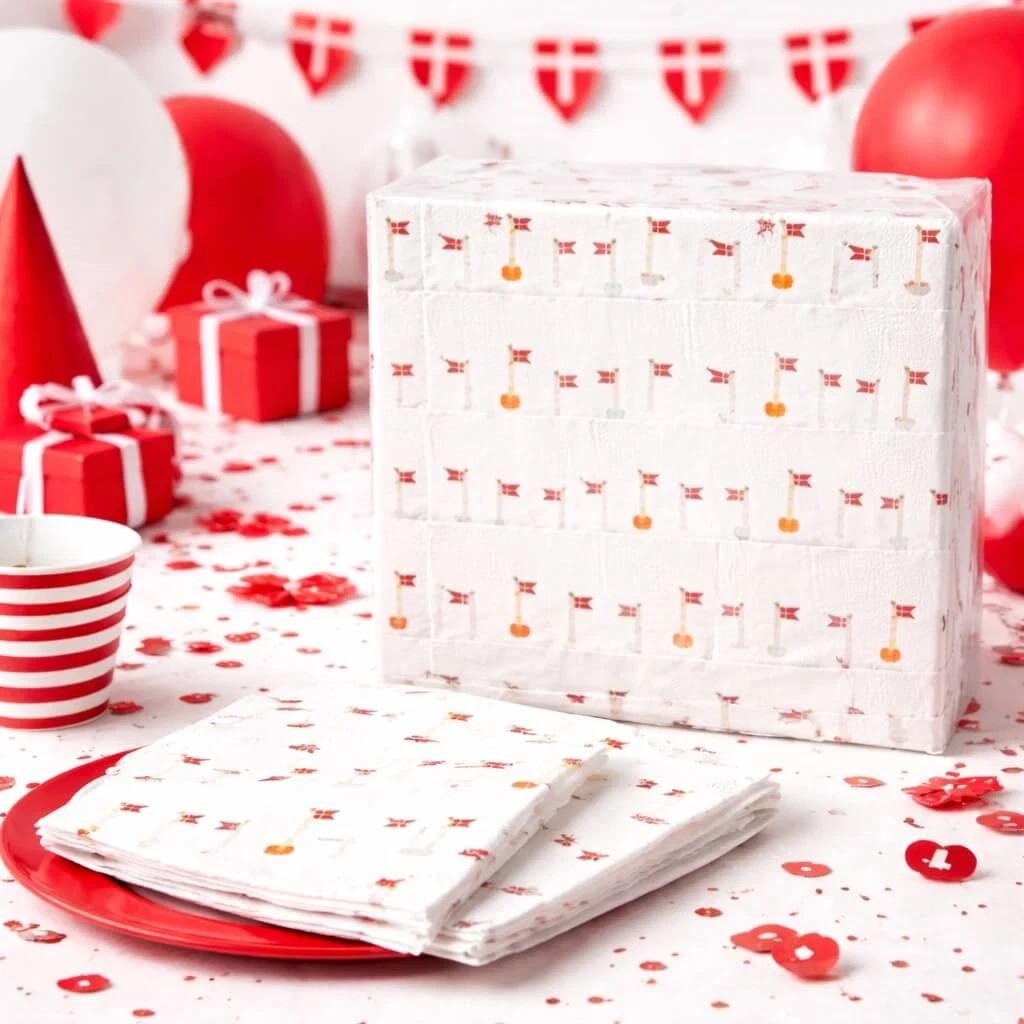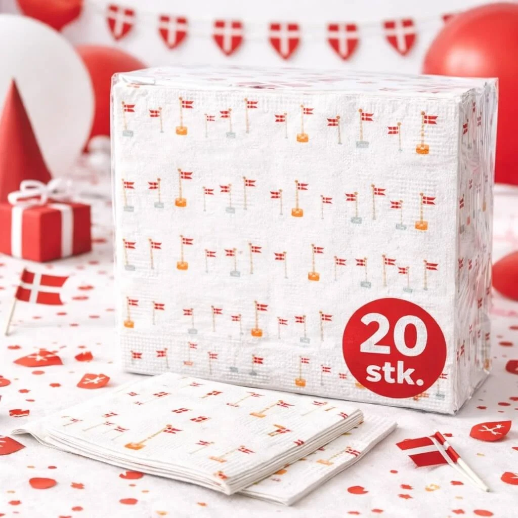 Servietter med Dannebrog 20 stk – Perfekte til dansk fest og borddækning