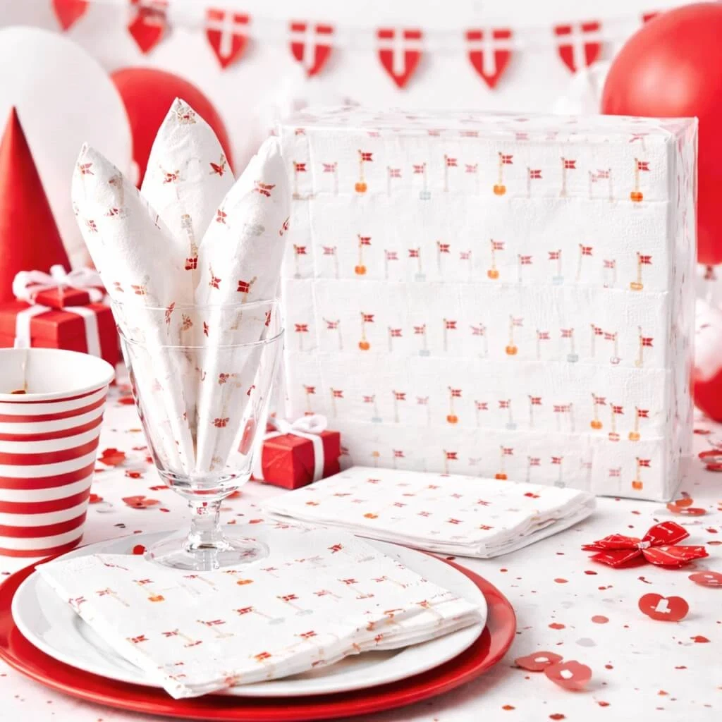 Vil du skabe en ægte dansk feststemning, er servietter med Dannebrog en vigtig del af bordet.