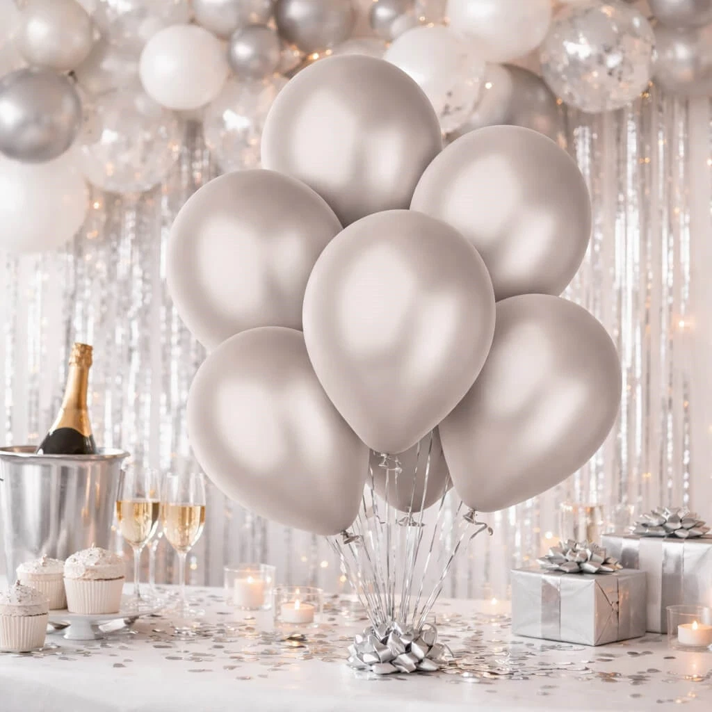 Disse sølv metallic er perfekte til ballonbuer, bordpynt og pynt til både børn og voksne.