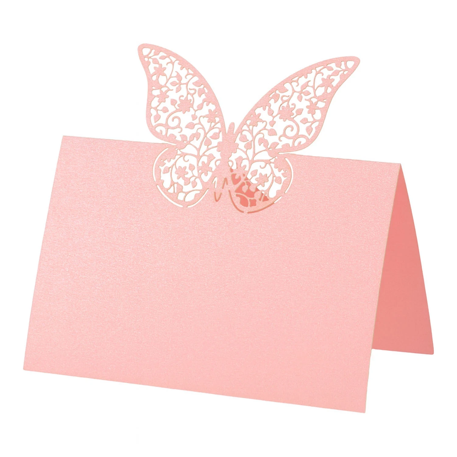 Løft din borddækning til nye højder med disse elegante sommerfugle‑bordkort i lyserød perlemor – 10 smukke stk., perfekte til at skabe en eventyrlig og personlig stemning til både bryllup, konfirmation og fødselsdag. Den blide lyserøde nuance får bordene til at glimte, mens sommerfugleformen tilfører et let og romantisk udtryk, der fanger alle blikket.