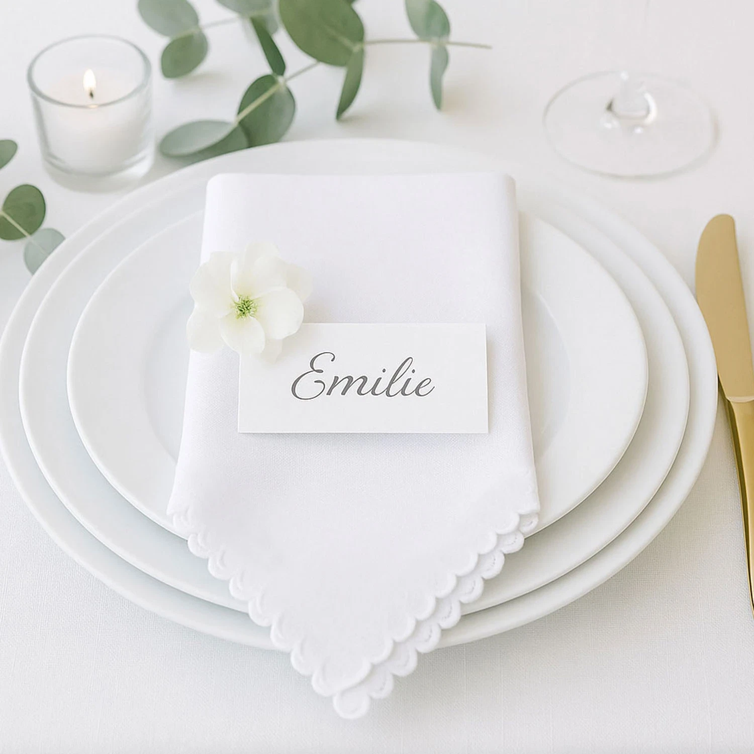 Er du træt af brug-og-smid-væk-mentaliteten? Så er disse hvide polyester-servietter lige noget for dig. De kan bruges igen og igen. De er enkle, men yndige med deres lille tungekant hele vejen rundt om servietterne. Bestil dem i dag, og dæk yndigt op.