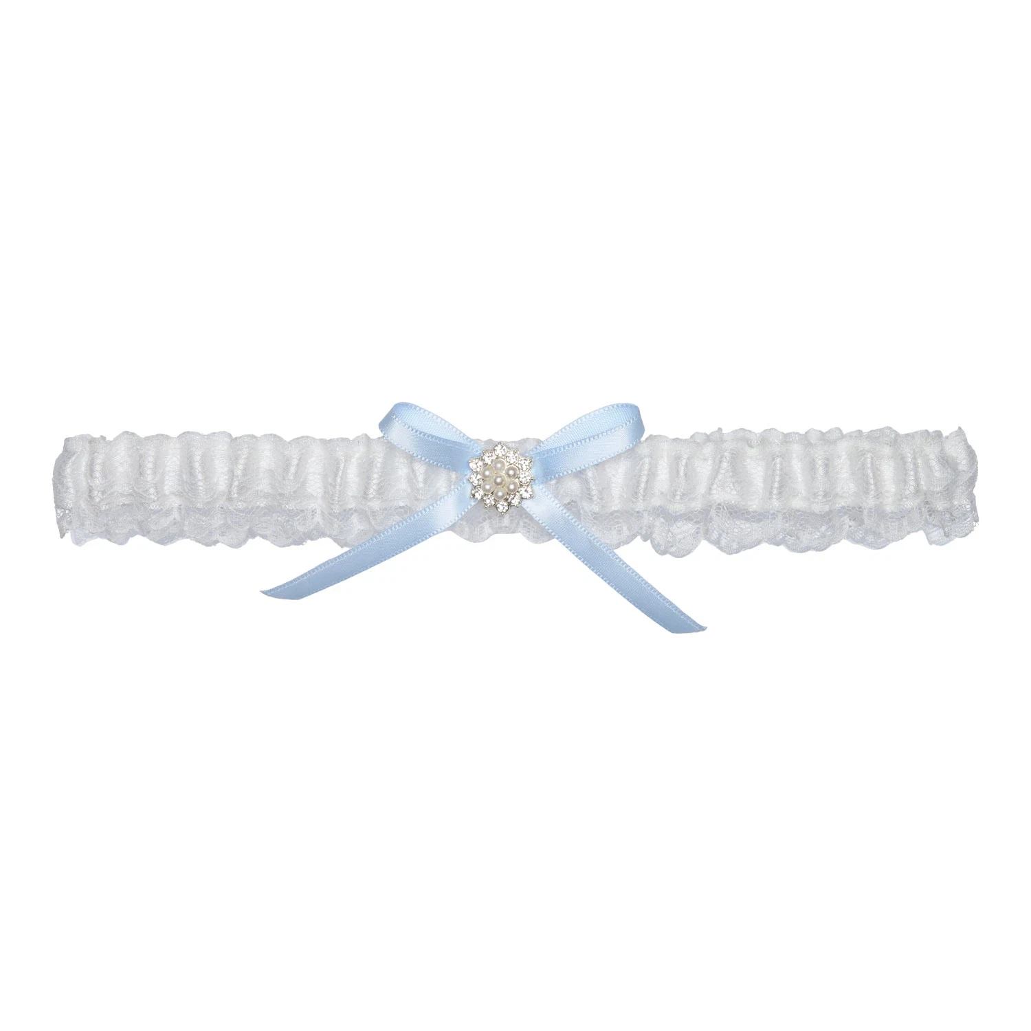 Strømpebånd blå sløjfe og perleblomst smal bryllupstradition