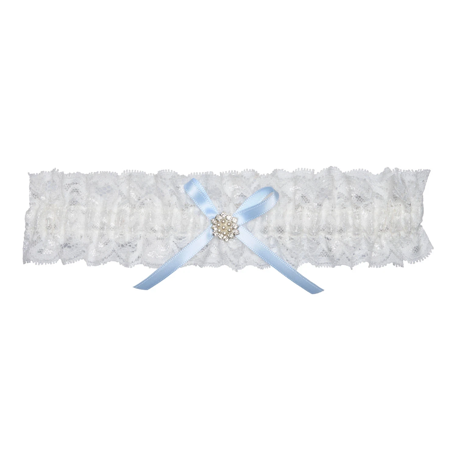 Strømpebånd blå sløjfe og perleblomst bred bryllupstradition