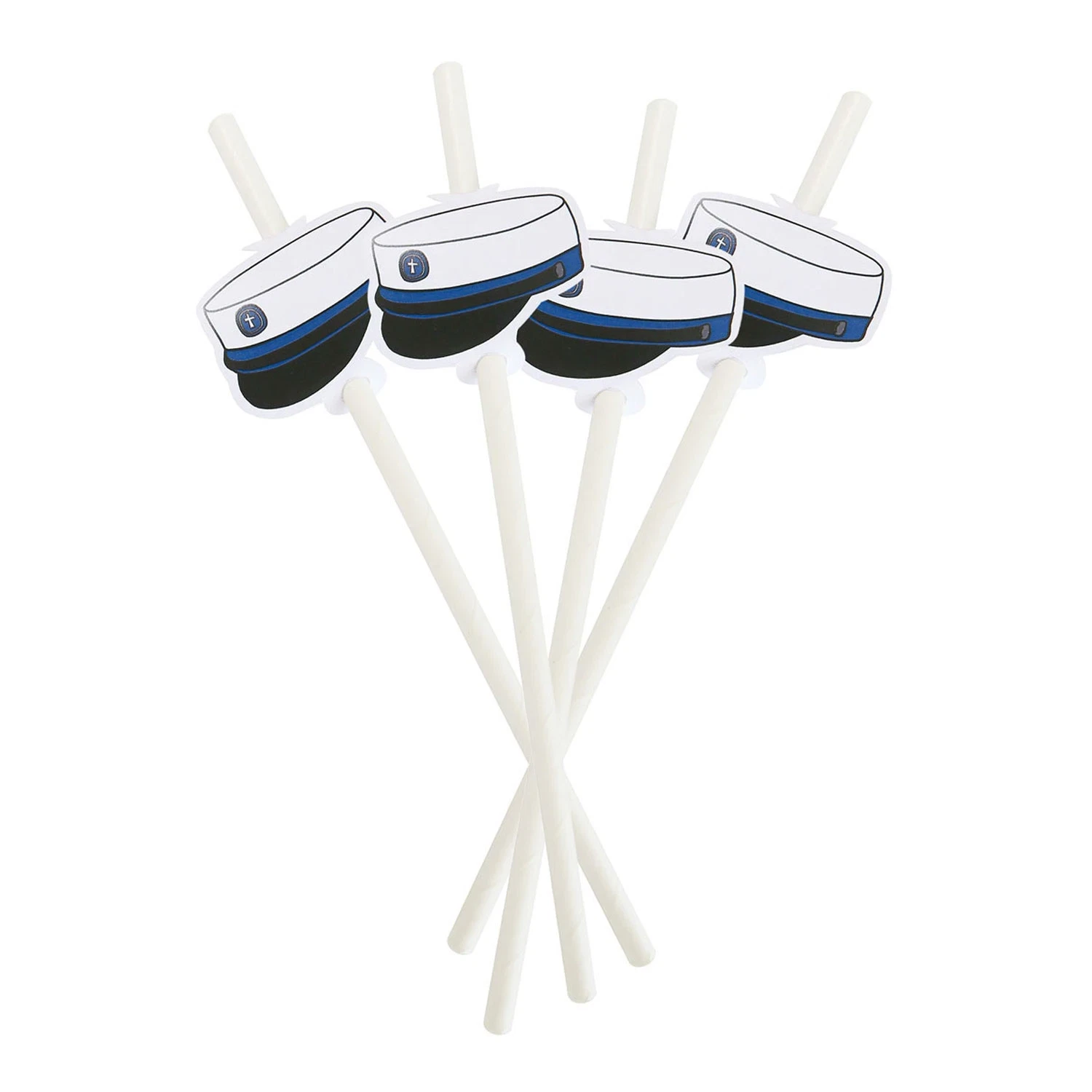 Sugerør Blå student hvid 20cm, 20 stk. studenterpynt