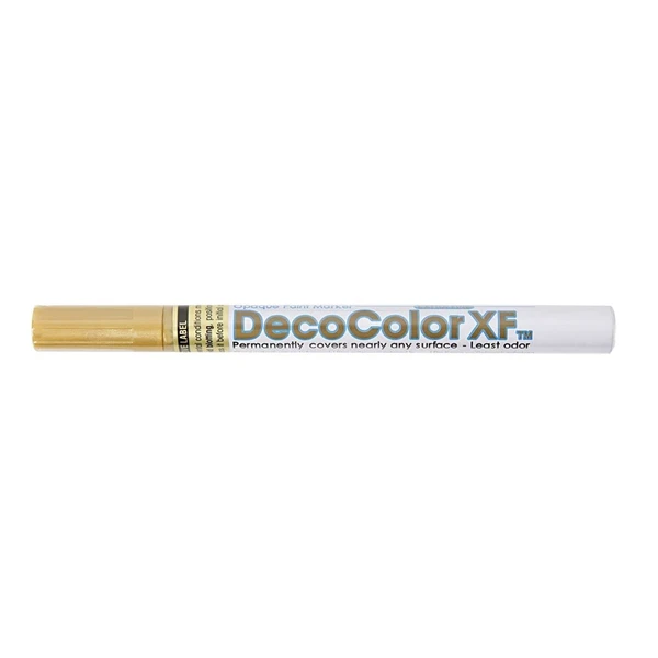 Guldtusch - dækkende og god at dekorere med. Kan anvendes på alle overflader - papir, glas, porcelæn, plast, træ, ler, sten, fliser, metal, læder, stof. Perfekt til invitationer, lykønskningskort og bordkort.