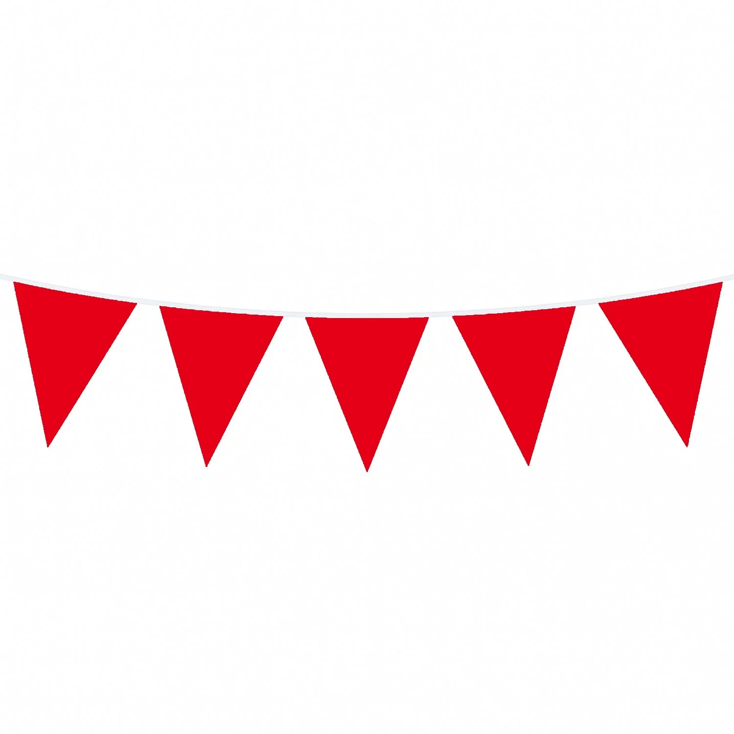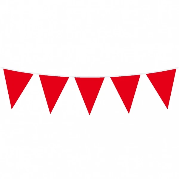 Festlig vimpel med røde flag. Der er i alt 15 flag på snoren. Flagvimplen kan bruges til barnedåb, babyshower, fødselsdag, studenterfest og andre festlige lejligheder. Vimplen er perfekt dekoration til festlokalet, festteltet eller haven og kan fint kombineres med honeycombs, balloner og flag.
